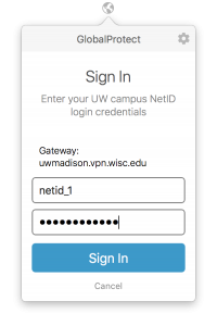 Notice: As of August 15th, 2018 the UW VPN system will have transitioned to the new PaloAlto GlobalConnect platform. This will require all VPN connections to use a new VPN client on your laptop or home desktop. See below for additional information, or navigate to https://uwmadison.vpn.wisc.edu to get started.